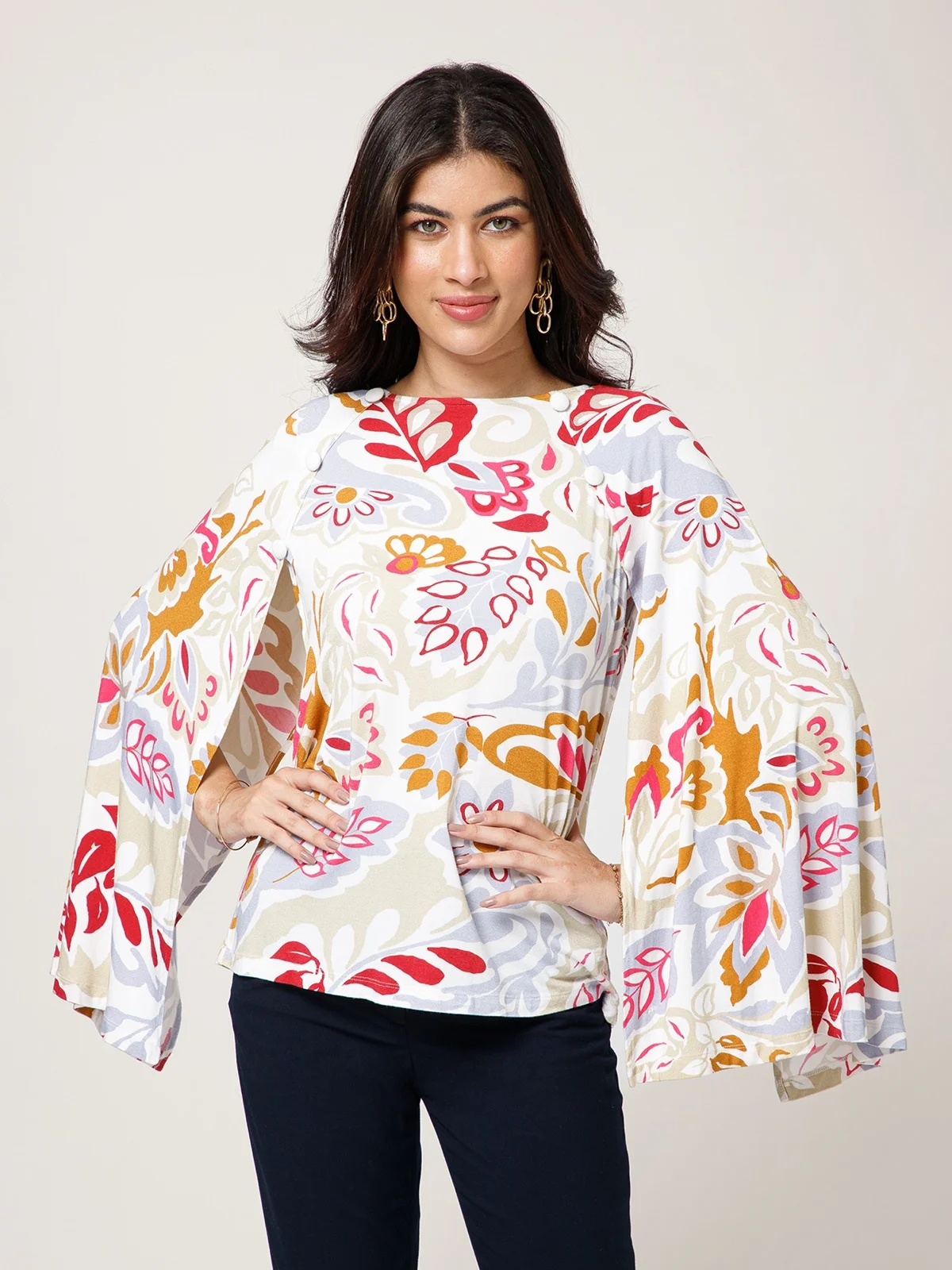 Step back in time with this gorgeous Retro Floral Cape Top that channels vintage glamour with a modern twist. Bold, nostalgic floral prints dance across the flowing cape silhouette, creating dramatic movement and visual impact. Perfect for layering over basics or wearing as a standalone statement piece—this top brings old Hollywood charm to contemporary fashion.